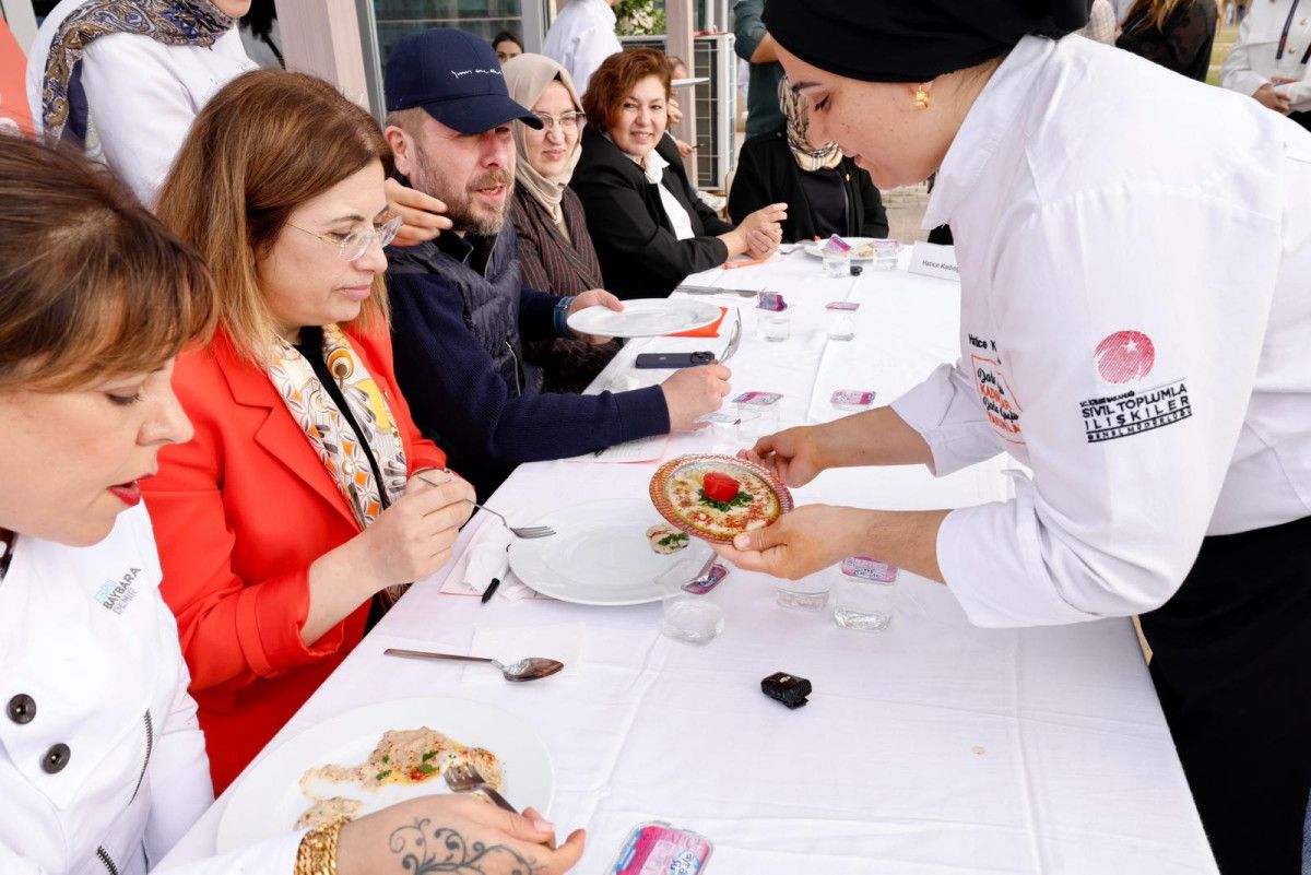 KADEM Yönetim Kurulu Başkanı Av. Dr. Canan Sarı ile şefler Yunus Emre Akkor, Ebru Baybara Demir ve Hatice Özdemir Tülün hazırlanan yemekleri değerlendirerek dereceye giren kadınları belirledi.